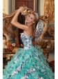 Fabulous and elegant! The sweetheart neckline dress in beight aqua makes you be the lightspot at your party. It features fashionable printed fabric full covered the bodice. Diagonal ruffles in contrasting layers of printed fabric and organza which gives the skirt a full look.Still hesitate? Take it home!