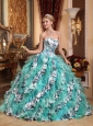 Romantic Multi-color Quinceanera Dress Ball Gown Sweetheart Organza Printing Ball Gown