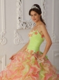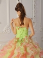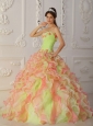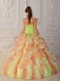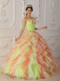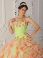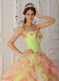 Romantic Multi-Color Quinceanera Dress  Strapless Organza Hand Flowers and Ruffles Ball Gown