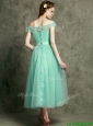 Romantic Off the Shoulder Cap Sleeves Prom Dress with Appliques and Hand Made Flowers