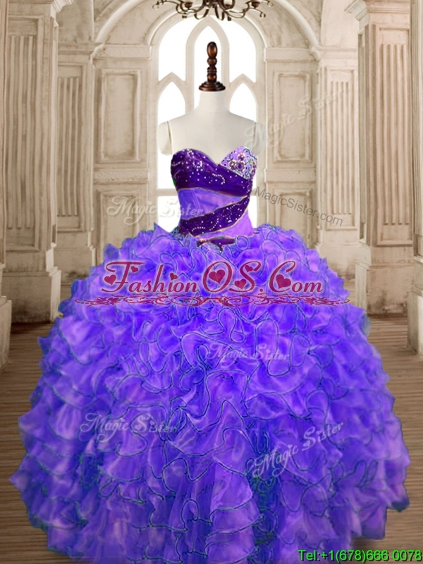 Romantic Organza Beading and Ruffles Sweet 16 Dress with Puffy Skirt
