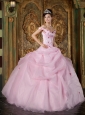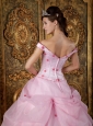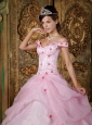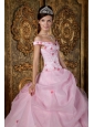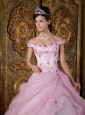 Romantic Pink Quinceanera Dress Off The Shoulder Organza Appliques Ball Gown