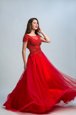Home >  Prom Dresses >  Beautiful Prom Dresses > Romantic Red A-line Tulle Bateau Cap Sleeves Lace Floor Length Zipper Evening Dress
