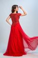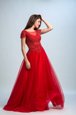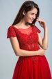 Romantic Red A-line Tulle Bateau Cap Sleeves Lace Floor Length Zipper Evening Dress
