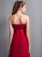 Romantic Red Empire Strapless Bridesmaid Dress Chiffon Pleat Floor-length