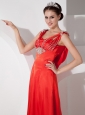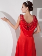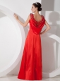 Romantic Red Empire V-neck Prom Dress Satin Beading Floor-length