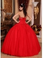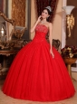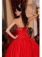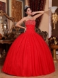 Home >  Quinceanera Dresses >  15 Quinceanera Dresses > Romantic Red Quinceanera Dress Strapless Tulle Beading Ball Gown