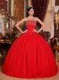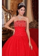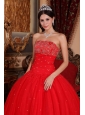 Romantic Red Quinceanera Dress Strapless Tulle Beading Ball Gown