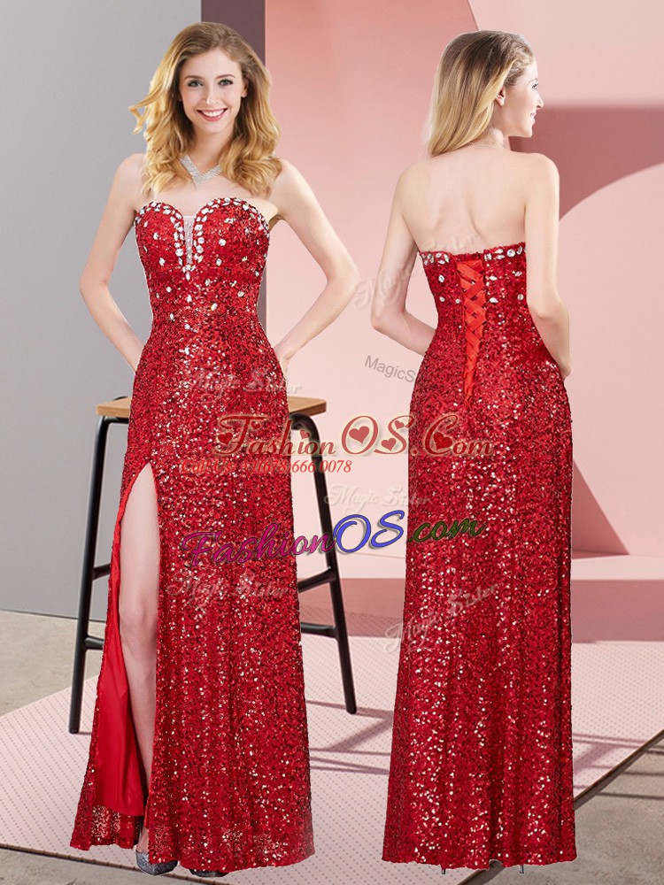 Romantic Red Sweetheart Lace Up Beading and Lace Prom Dress Sleeveless