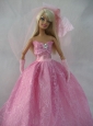 Home >  Accessories >  Quinceanera Doll Dresses > Romantic Rose Pink Strapless Lace Wedding Dress For Quinceanera Doll
