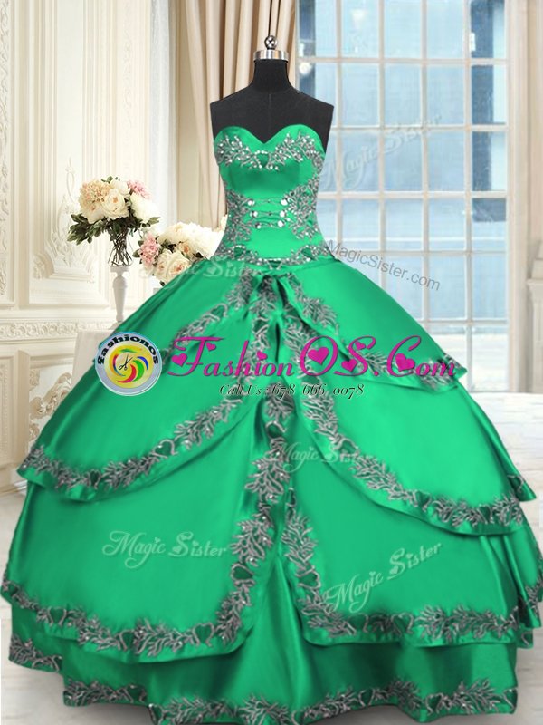 Romantic Ruffled Ball Gowns Vestidos de Quinceanera Turquoise Sweetheart Taffeta Sleeveless Floor Length Lace Up
