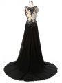 Romantic Scoop Sleeveless Brush Train Side Zipper Womens Evening Dresses Black Chiffon