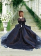 Romantic See Through Long Sleeves Flower Girl Pageant Dress in Navy Blue-