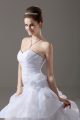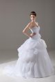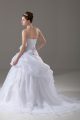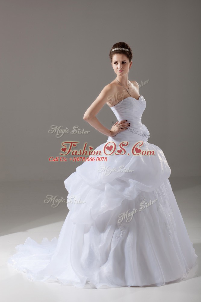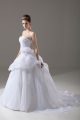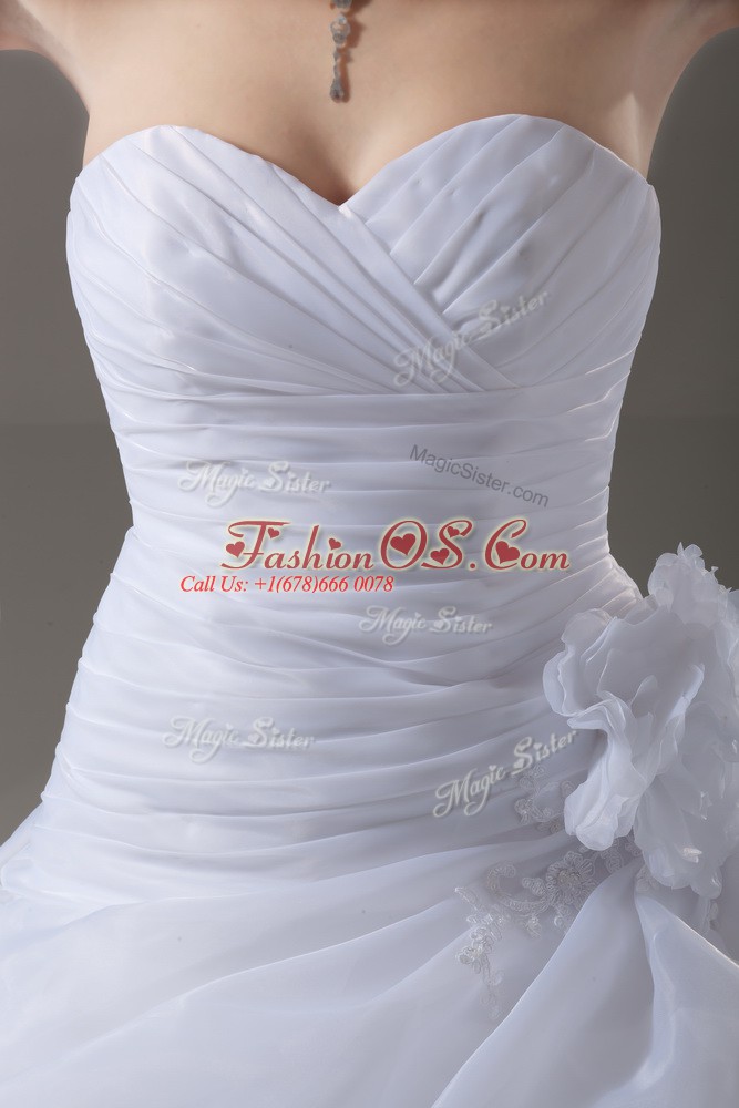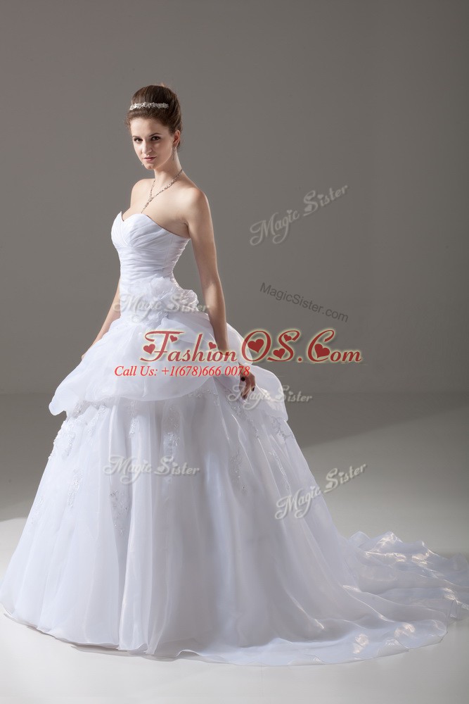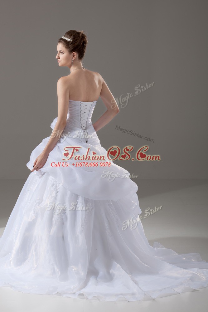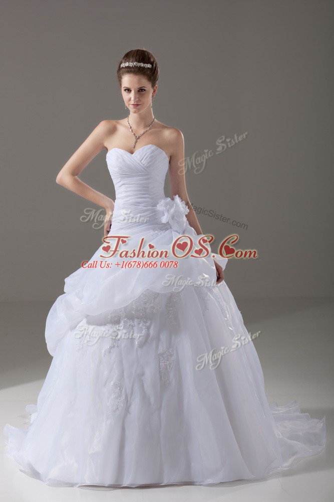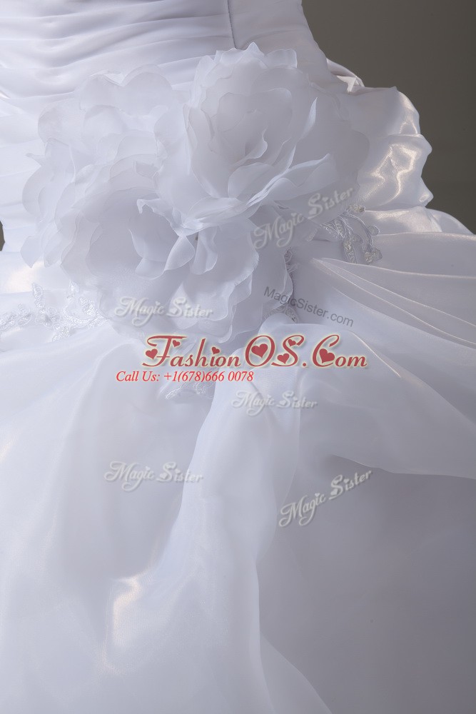 Romantic Sleeveless Brush Train Appliques and Hand Made Flower Lace Up Wedding Gowns
