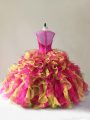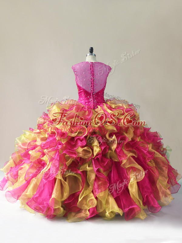 Romantic Sleeveless Floor Length Beading and Ruffles Zipper Quinceanera Gowns with Multi-color