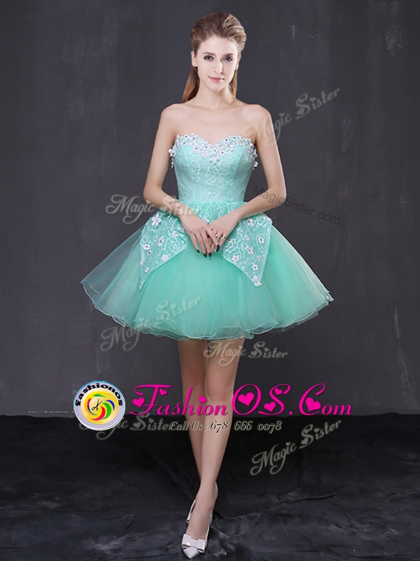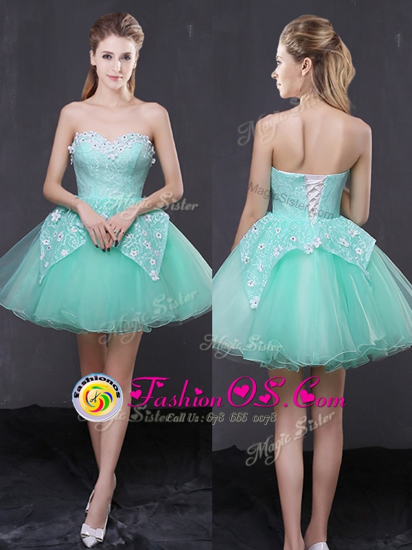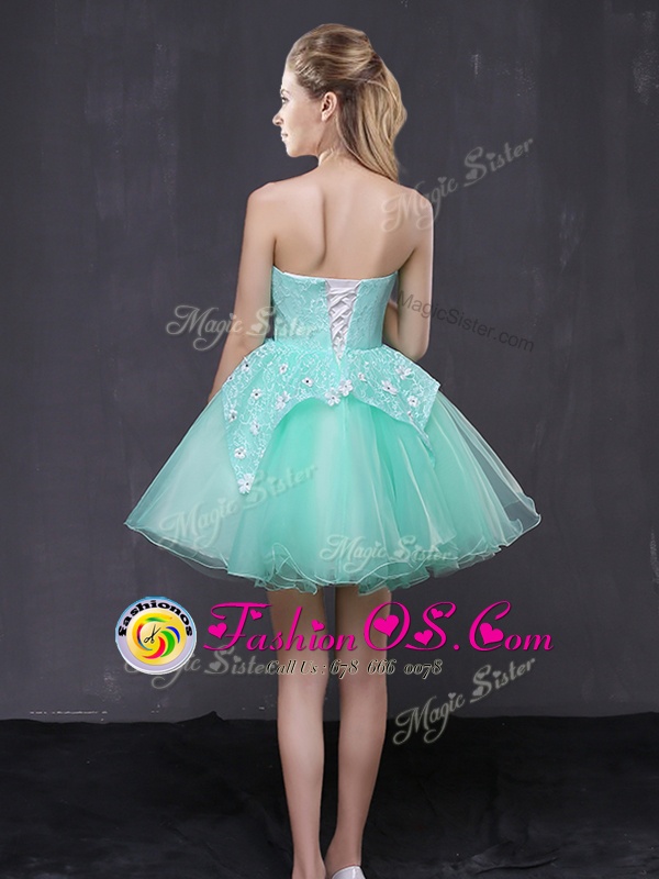 Romantic Sleeveless Lace Up Mini Length Lace and Appliques Cocktail Dress