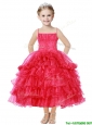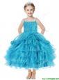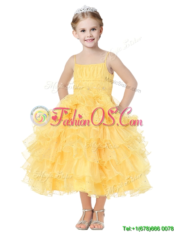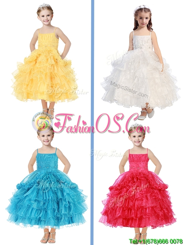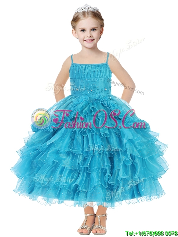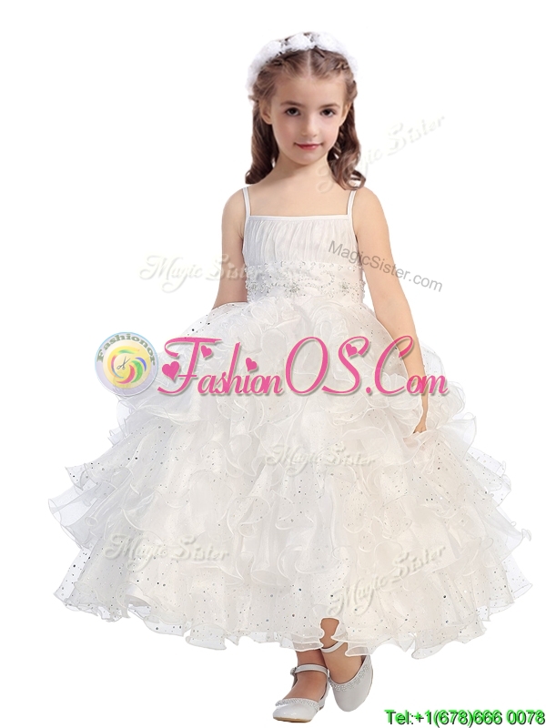 Romantic Spaghetti Straps Little Girl Pageant Dress with Beading and Ruffled Layers
