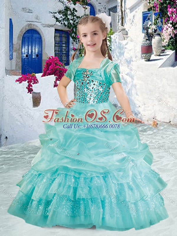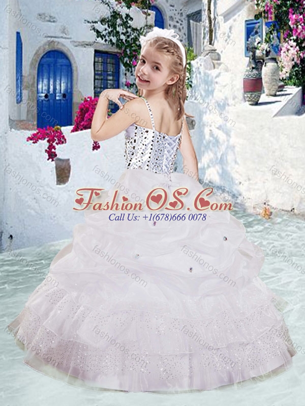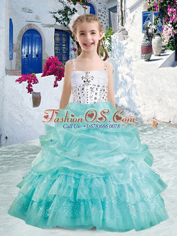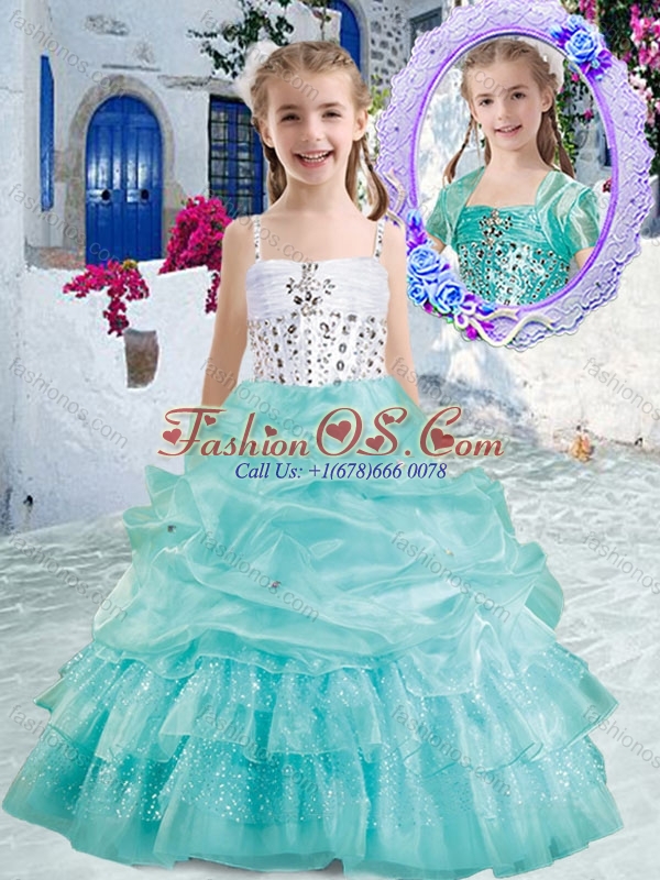 Romantic Spaghetti Straps Little Girl Pageant Dresses with Beading and Bubles