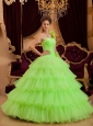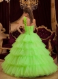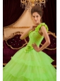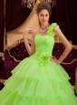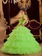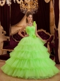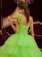 Romantic Spring Green Quinceanera Dress One Shoulder Ruffles A-line / Princess