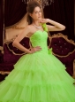 Home >  Quinceanera Dresses >  Cute Quinceanera Dresses > Romantic Spring Green Quinceanera Dress One Shoulder Ruffles A-line / Princess