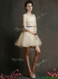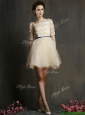 Romantic Square Half Sleeves Bridesmaid Dresses with Sashes and Lace