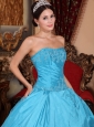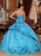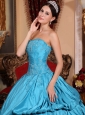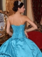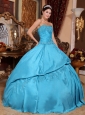 Romantic Teal Quinceanera Dress Strapless Taffeta Beading Ball Gown