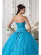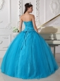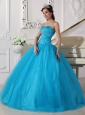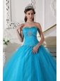 Home >  Quinceanera Dresses >  Discount Quinceanera Dresses > Romantic Teal Quinceanera Dress Strapless Tulle Beading and Ruch Ball Gown