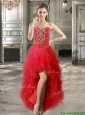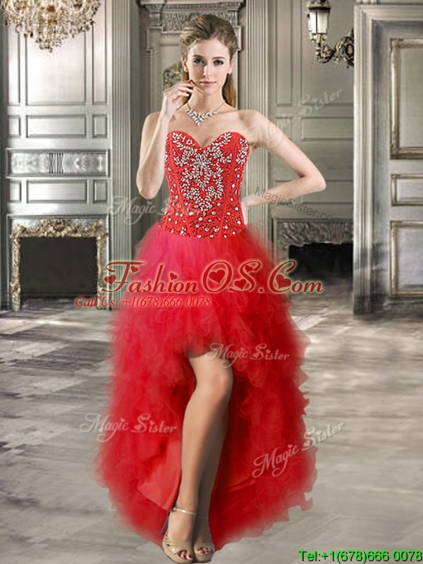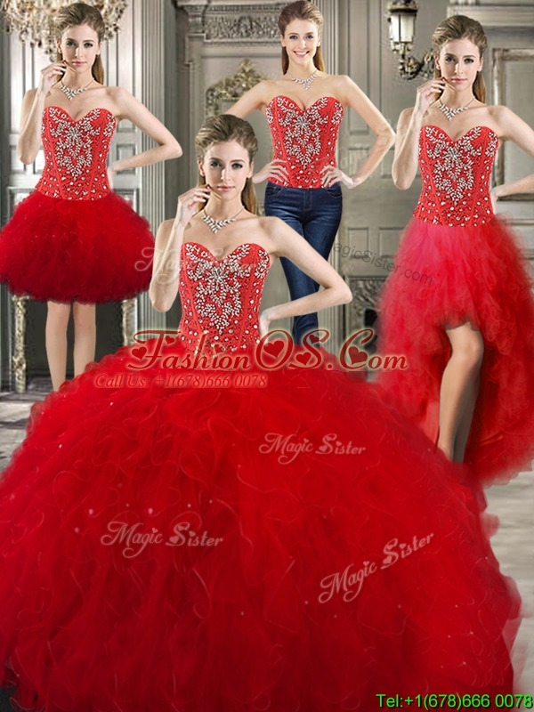Romantic Tulle Red Detachable Sweet 16 Dresses with Beading and Ruffles