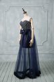 Home >  Prom Dresses >  New Arrivals > Romantic Tulle Sweetheart Sleeveless Lace Up Beading and Bowknot Prom Party Dress in Navy Blue