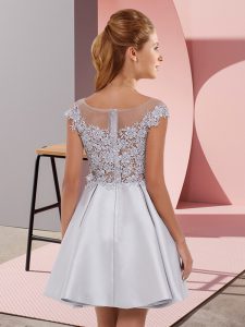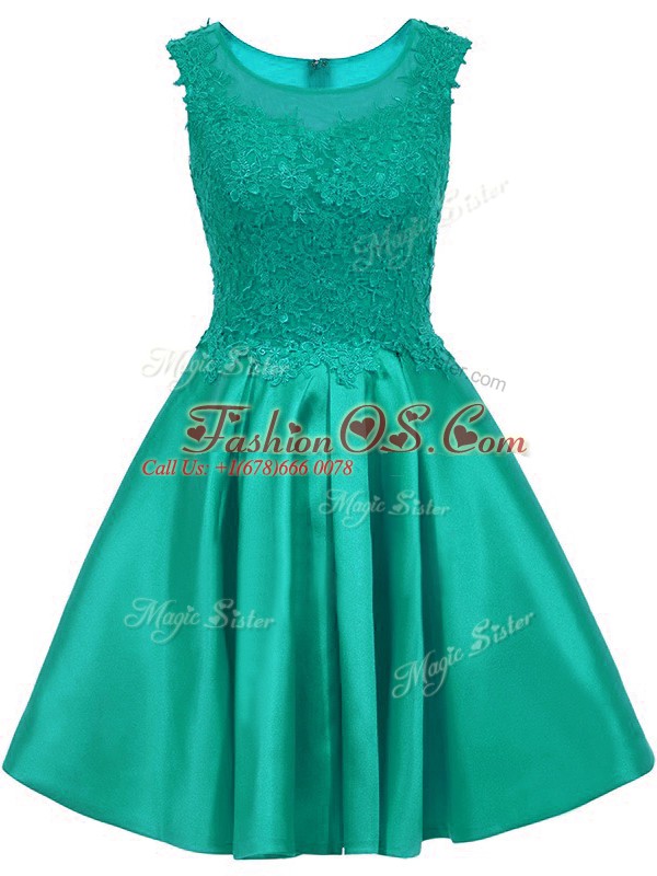 Romantic Turquoise A-line Satin Scoop Sleeveless Lace Mini Length Zipper Quinceanera Court of Honor Dress