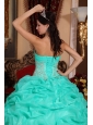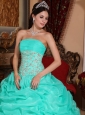 Romantic Turquoise Quinceanera Dress Strapless Organza Appliques Ball Gown