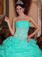 Home >  Quinceanera Dresses >  Popular Quinceanera Dresses > Romantic Turquoise Quinceanera Dress Strapless Organza Appliques Ball Gown