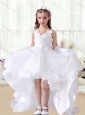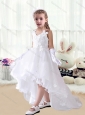 Romantic V Neck Appliques High Low White Flower Girl Dresses