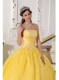 Romantic Yellow Quinceanera Dress Strapless Taffeta and Tulle Appliques Ball Gown