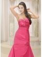 This gorgeous gown is just perfect for any would-be prom princess. It's made in a sheath style with sweetheart neckline and an elegant ruched pattern in the bodice. A lovely bowknot thrusts in the ruching bust makes the dress sassy and charming. The mermaid-style skirt hugs your frame. The lace up back completes the look. A very figure flattering design.