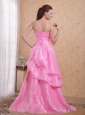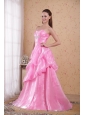 Rose Pink A-line / Princess Sweetheart Brush Train Organza Beading and Ruch Prom / Celebrity Dress