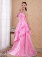 Home >  Prom Dresses >  Junior Prom Dresses > Rose Pink A-line / Princess Sweetheart Brush Train Organza Beading and Ruch Prom / Celebrity Dress