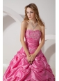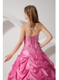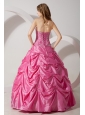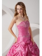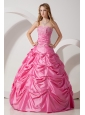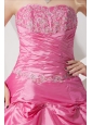 Rose Pink A-line Strapless Appliques Quinceanera Dress Floor-length Taffeta