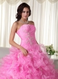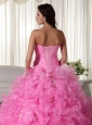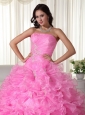 Home >  Quinceanera Dresses >  Pretty Quinceanera Dresses > Rose Pink Ball Gown Strapless Floor-length Organza Appliques Quinceanera Dress