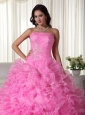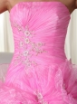 Rose Pink Ball Gown Strapless Floor-length Organza Appliques Quinceanera Dress
