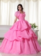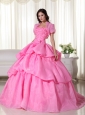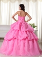 Home >  Quinceanera Dresses >  Pretty Quinceanera Dresses > Rose Pink Ball Gown Strapless Floor-length Organza Hand Flowers Quinceanera Dress