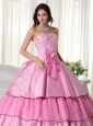 Home >  Quinceanera Dresses >  Pretty Quinceanera Dresses > Rose Pink Ball Gown Strapless Floor-length Taffeta Beading Quinceanera Dress