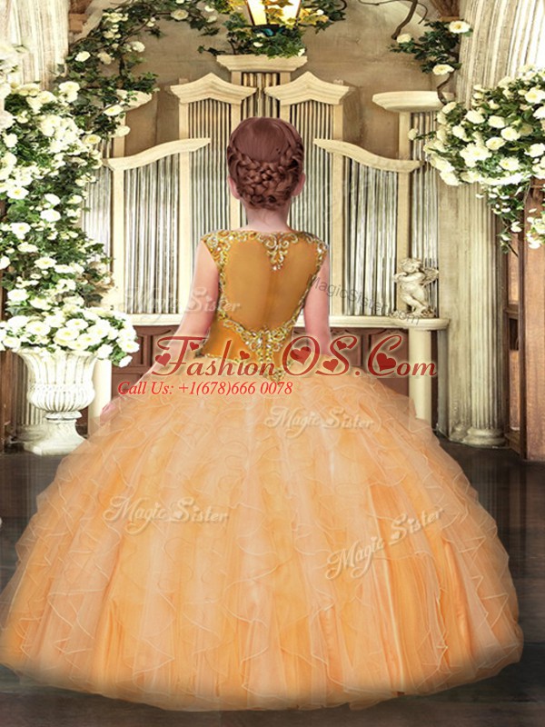 Home >  Special Occasion Dresses >  Beautiful Kids Pageant Dresses > Rose Pink Ball Gowns Organza Scoop Sleeveless Beading and Ruffles Floor Length Zipper Pageant Dress for Teens