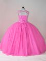 Rose Pink Ball Gowns Scoop Sleeveless Tulle Floor Length Lace Up Beading Sweet 16 Quinceanera Dress