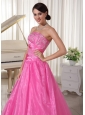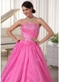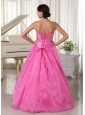 Rose Pink Embroidery With Beading Quinceanera Dress With Ruch A-line Taffeta and Organza