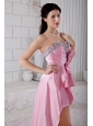Rose Pink Empire Beading Sweetheart Prom / Evening Dress High-low Taffeta