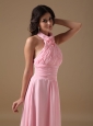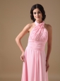 Home >  Bridesmaid Dresses >  Elegant Bridesmaid Dresses > Rose Pink Empire Halter Brush Train Chiffon Ruch Bridesmaid Dress