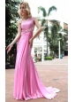 Rose Pink Empire One Shoulder Brush / Sweep Chiffon Ruch Prom Dress