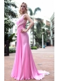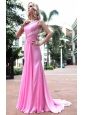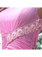 This pink prom dress is your perfect choice to attend ball, wedding and any other occasion.The fabulous bodice features one shouler that accented with the chic flower-style beadings.The shimmering band and ruchings defines your natural waistline completely.The floor-length skirt with the gorgeous sweep train contures your slim figure the zipper in the right side completes this wonderful design.