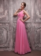 Rose Pink Empire One Shoulder Floor-length Chiffon Beading Prom / Evening Dress